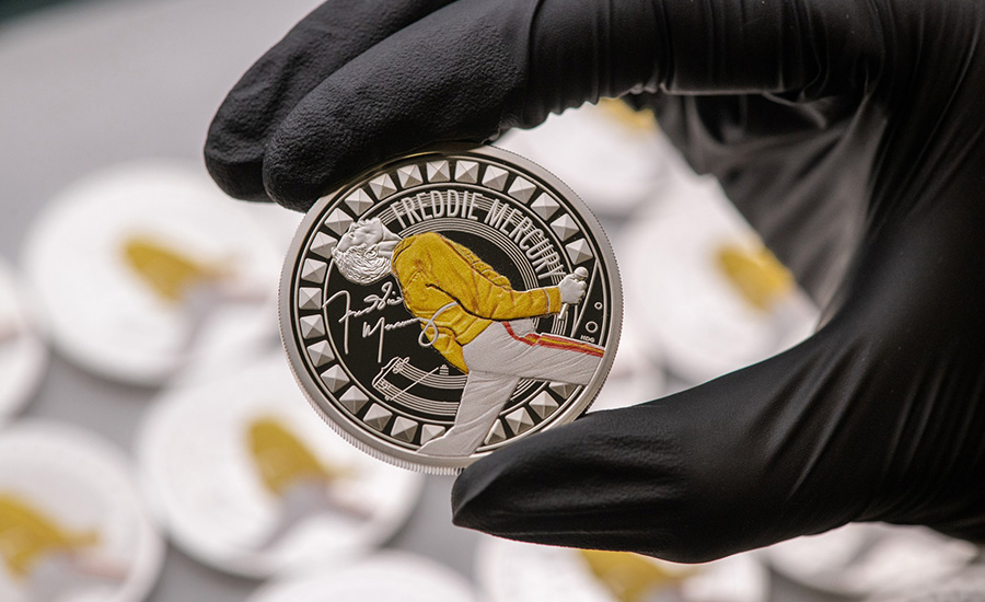 El legendario registro vocal de cuatro octavas de Freddie está representado por un pentagrama musical que rodea el borde de la moneda, abarcando desde notas graves hasta agudas. El diseño del borde, inspirado en su brazalete tachonado, toma como referencia su recordado vestuario en la actuación en Live Aid, un tributo adecuado a lo que muchos consideran la mejor actuación de rock de todos los tiempos. Una selección de las monedas también incluirá color, dando vida a la icónica chaqueta amarilla de Freddie en el diseño y capturando la energía vibrante que lo convirtió en una presencia escénica magnética.