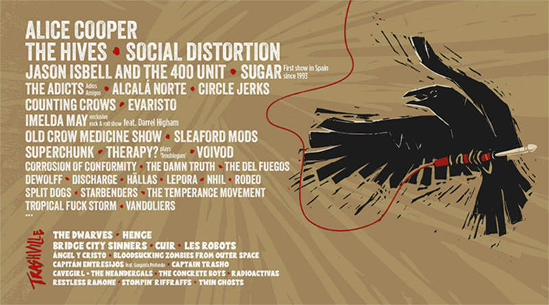 Por ahora, estos son todos los artistas confirmados: Alice Cooper, Social Distortion, The Hives, Evaristo, Alcalá Norte, Superchunk, Counting Crows, Imelda May, Jason Isbell & The 400 Unit, Old Crow Medicine Show, Sleaford Mods, Sugar, The Temperance Movement, Voivod, Corrosion of Conformity, Therapy?, The Damned Truth, The Del Fuegos, Discharge, Circle Jerks, Tropical Fuck Storm, Starbenders, Split Dogs, Rodeo, Nhil, Hällas, DeWolff, Lepora, Les Robots, Twin Ghosts, Vandoliers, Bloodsucking Zombies from Outer Space, Bridge City Sinners, Capitán Entresijos feat. Garganta Profunda, Captain Trasho, Cavegirl + The Neandergals, Cuir, Restless Ramone, Stompin’ Riffraffs, The Concrete Boys, Ángel y Cristo, Henge, Radioactivas, The Adicts, Imelda May exclusive rock & roll show feat. Darrel Higham y The Dwarves.