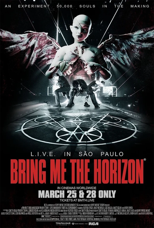 La posibilidad de vivir una de las más destacadas actuaciones de la historia de Bring Me The Horizon es la que se ofrecerá los días 25 y 28 de marzo en cines de todo el mundo con la proyección de lo que se define como un “experimento virtual inmersivo en vivo” y que se presentará bajo el título de ‘L.I.V.E. In São Paulo (Live Immersive Virtual Experiment)’.