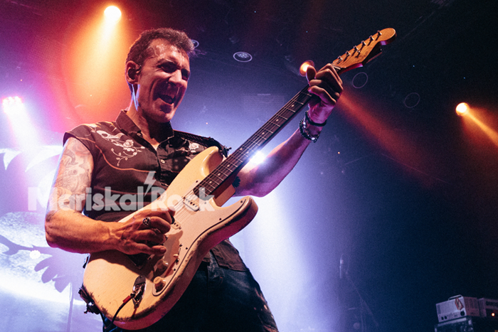 Mai Medina, alma y corazón de Ciclonautas, es todo lo que se espera del frontman de una banda de rock ’n’ roll. Entre tema y tema, más de un chascarrillo le quitaba hierro al asunto ante pequeños fallos técnicos de los que solo los músicos se percatan. Casi lloro de la risa cuando, casi al principio del bolo, soltó: “¡¿Están contentooos?!” y, ante el “sí” multitudinario del personal, replicó con un “¡¿Pero muy contentos?!”. Tras un ferviente “sí” por parte de un espectador, respondió: “¡Ese va drogado!”, desatando las risas de toda la sala. Más allá de su potencial como showman, Mai es un excelso letrista y compositor, creando canciones dignas de estar en el top del rock nacional argentino. Espero que el tiempo termine de hacerle justicia.