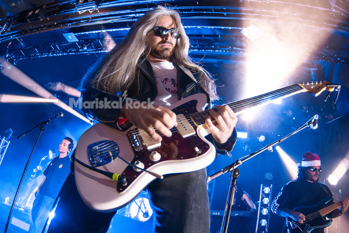 Unos superhéroes disfrazados con los mismos trajes que la franquicia japonesa que, por cierto, ya merodeaban por los exteriores de la Riviera promocionando el concierto del Movistar Arena de 2027. “Vamos a echar un tema viejo, viejo. Igual no se vuelve a tocar en mucho tiempo”, nos adelantaban para revisitar sus primeras maquetas con “Codere”, un guiño al pasado más embrionario del grupo pero perfectamente integrada en el repertorio, demostrando que el discurso de Alcalá Norte estaba ya ahí antes de que todo explotara. Tras él, llegaba “La sangre del pobre”, con un Álvaro Rivas articulando cada verso cargado de conciencia de clase y que enlazaban con el “10K” de Los Planetas en casi un punto de conexión generacional.