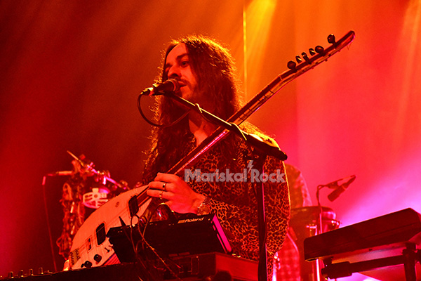 Que el concierto fuera en la sala grande del bilbaíno Kafe Antzokia nos dio a entender que se esperaba una multitud considerable más allá de cuatro freaks empapados de psicodelia. No imaginábamos que el recinto se llenaría de una mayoría femenina con tendencia bailonga, sobre todo por las primeras filas, que proporcionaría un ambientazo impresionante para una noche entre semana. Su aproximación al synth pop y a los ritmos de discoteca sin duda les ha abierto un nicho mucho más aperturista que los límites intrínsecos de su lisérgico género.