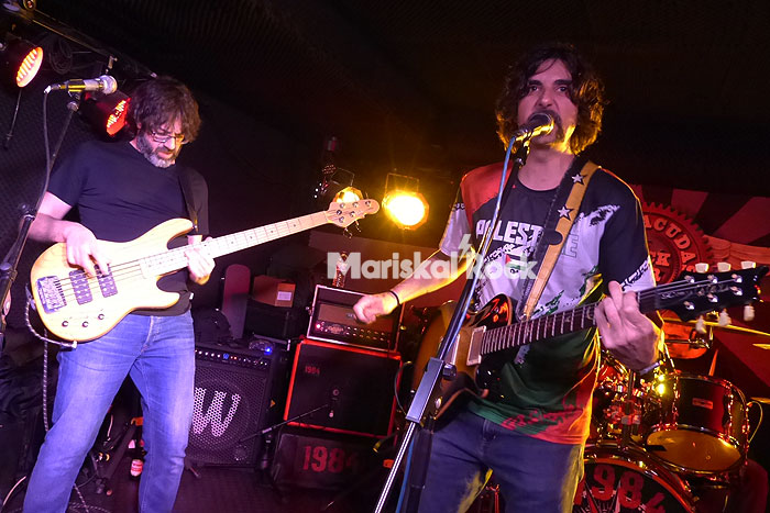 De cualquier manera, era velada doble, que comenzaron los locales 1984, una formación a la que tenía en el radar hacía tiempo, y escuchados, pero que por circunstancias no había visto todavía en vivo y me gustaron mucho. Comenzaron a eso de las 22:00 de la mano de su rock del nuestro de siempre, y aunque no comenzaran precisamente en el 84, como hacen el guiño en el nombre, sí que andarían naciendo por ahí (año arriba o abajo) y entiendo que por eso el nombre del grupo. Sí suenan a algunas de las bandas de esa época, según el tema, con una base de influencias desde Leño, Topo y compañía, urbanos, pero no “calimocheros”, si me permitís decirlo así, y más clásicos que novedosos en este sentido.