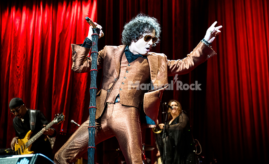 Imponentes cortinas en tono rojo fuerte que recrean una mezcla de circo y teatro veneciano forman un gigantesco telón. Los bajos de las plataformas donde se ubican los sets de los instrumentos también están adornados con telas en el mismo color. Todo preparado. El rugido del respetable es ensordecedor. La temperatura va en aumento. Se acelera el pulso. La atmósfera es envolvente. Todos toman posiciones y el Huracán Ambulante inicia el show con “Otto e Mezzo”, el clásico de Nino Rota, incluido en la película “8½” de Federico Fellini, y la función comienza bajo la batuta y la chistera, en este caso sombrero estilo cowboy, de Enrique Bunbury.