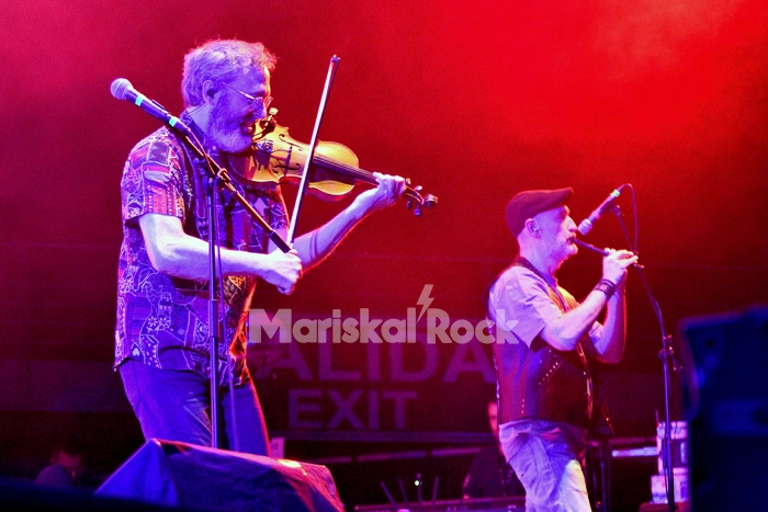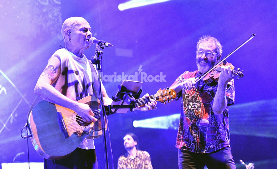“Cuéntame un cuento” suena como el himno que es, y Cifu presenta sentidamente uno a uno a los miembros de la banda en vivo mientras sus rostros aparecen en fichas policiales en la pantalla central y se avecina el bloque final que incluye “El emigrante”, “El ska del paro” y se suma en el binomio “El pelotazo / Correacaminos” el eterno Moha de Mägo de Oz, quien, junto a Guillermo Manzanares y Alberto García, forman un tridente de violines de fuego demostrando que la materia sí puede mutar en pleno siglo XXI a un rock celta de autor. También aporta su arte nuevamente la compañía de danza Irish Treble.