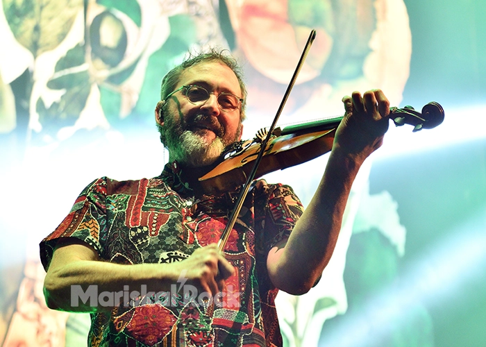Un violín se abraza con el humo abundante, el grupo se suma instrumentalmente mientras el público comienza a tocar las palmas y las visuales se apoderan de la pantalla central mientras el inicio sonoro es de antología culminado por un océano de aplausos. Vaya arranque con “El túnel de las delicias” seguido de “Macedonia tradicional” y concluido con “¿Que voy a hacer yo?”.
