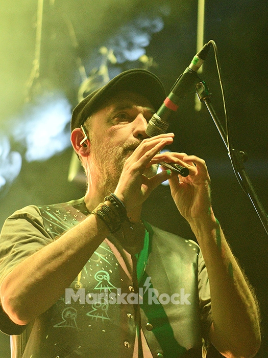 Hasta diez músicos en escena presenta la formación vallisoletana, que ejecuta una amplitud de instrumentos (violín, flauta, sección de vientos, gaita, acordeón, batería, bajo, guitarras, teclados y voces) con los cuales envuelven bajo sus texturas a un Palacio de Deportes que lucía resplandeciente, ofreciendo un sonido pulcro, contundente y acompasado.