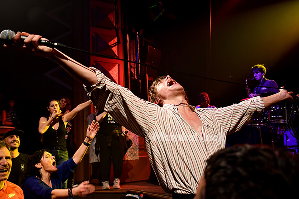 “It Flies” fue un auténtico subidón, con el saxofón comandando una vez más el descontrol, y “Among Us” añadió pulsión rockera a la velada, otro momento idóneo para que el frontman se volviera a zambullir en su piscina particular, aunque en esta ocasión consiguió que la multitud se agachase para luego saltar con fuerza. Implicación total.