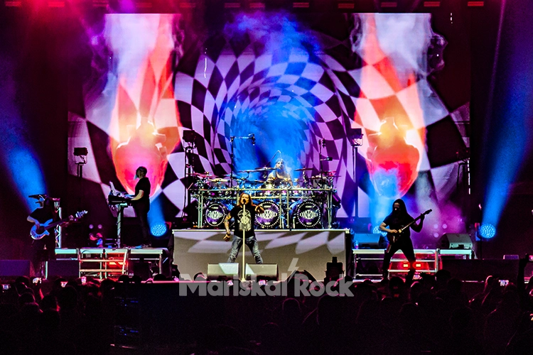 Al caer en telón, es inevitable ver la batería de tres bombos, exagerada y utilizada con maestría en su totalidad, que maneja Mike Portnoy, flanqueado en una plataforma a la izquierda por Jordan Rudess, que nunca se está quieto, girando en su teclado, y los veteranos John Petrucci a la derecha y John Myung a nivel de escenario justamente frente a Jordan Rudess.