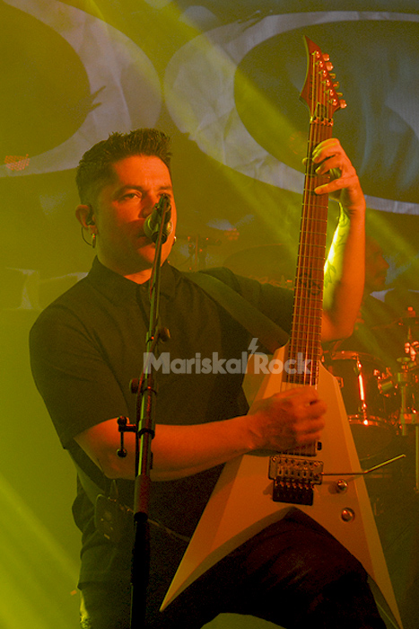 Con una gran puntualidad iban ocupando sus puestos los componentes mientras sonaba la intro para arrancar con "A un paso del cielo", con su letra machacona hasta que Carlos, el último en salir, ponía a prueba los muros de la sala. Se nota que eran sólidos ya que los seguían llevando al límite con “Oh yeah!”, la primera en caer del último trabajo que iban a tocar casi en su totalidad, mientras a nosotros nos levantaban y nos llevaban en volandas.