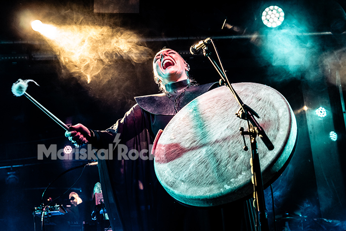 Dia martes en Madrid, y desde primera hora, la expectación se palpaba en el ambiente. Era evidente que íbamos a acudir a un festín, a un ritual, a una celebración nórdica de rock en un amplio espectro. Abundante humo, y el trio capitaneado por Elinborg, con batería, guitarra eléctrica, y programaciones que se intercalan con los teclados, interpretaba “Til Myrkus” y creaba una atmósfera por demás envolvente.