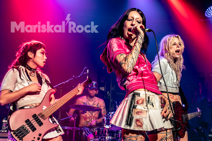 Tras jugar con el público como coro afinando en sol y en mi, los pogos se multiplicaron en el alegato a favor de la sanidad pública de “Anaesthetist”, para después volver a su lado punk pop electrónico más brillante y adictivo en “Live Outside”, con la gente dejándose la voz después de que Rou les cediera, en altura, la palabra. Tras preguntarnos si estábamos sudando (obvio), el triplete de “satellites* *”, “THE GREAT UNKNOWN” y “Juggernauts” evidenció su capacidad para seguir regalando himnos y melodías a lo largo de toda su trayectoria. Todas encajan, todas suenan brillantes, agresivas y, ante todo, divertidas: sabes que detrás de un breakdown habrá el “nanana” más absurdamente pop… y estarás dentrísimo.
