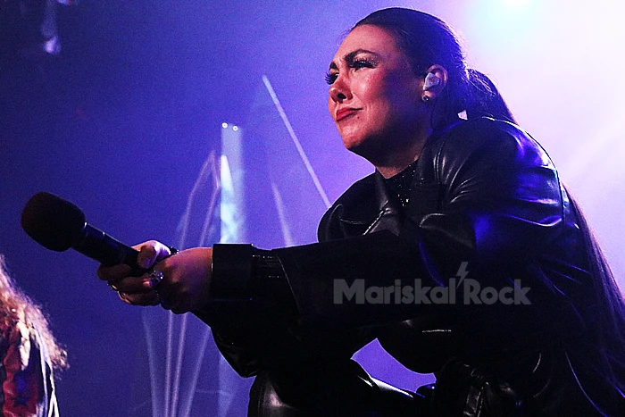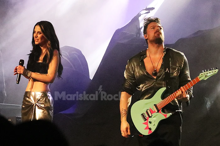 “Esto no es una Story; preparaos para sentir”, sugería la locución. Y preparados, muy preparados estábamos cuando una cuenta atrás desembocó en “Apparition”, en la que Simone Simons apareció ataviada con un gótico velo negro. Como esta, la coreada “Cross the Divide” pertenece a su más reciente esfuerzo discográfico, ‘Aspiral’, cuya gira por salas se había hecho de rogar. Simone, ya con la cara descubierta y portando unas llamativas gafas de sol, dio buena cuenta de su espléndido estado vocal, desprendiendo una madurez y una versatilidad apabullantes, infranqueables.