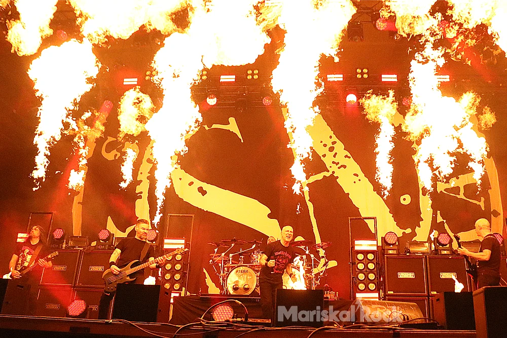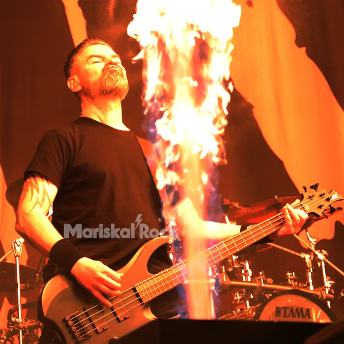 En el día en el que nos habíamos enterado de la inesperada y dolorosa muerte de Phil Campbell, Soziedad Alkoholika decidieron hacer sonar “The Ace of Spades” de Motörhead como intro, y Juan vestía una camiseta de la mítica banda liderada por el también añorado Lemmy Kilmister cuando, junto al resto de la formación, salió a escena como un tornado para embestirnos con abrumadores cortes de su último trabajo, ‘Confrontación’, como “Alienado” o “Falsos dioses”, que aunque sonaron exacerbados y bestiales, ni se acercaron al entusiasmo desatado poco después por “Polvo en los ojos”, caviar contestatario con la acostumbrada enjundia mensajística y esas sacudidas de guitarras, bajo y batería inapelables. El fuego hizo acto de presencia en escena con severas llamaradas que acentuaron la impresión de vivir algo escandalosamente y maravillosamente devastador.