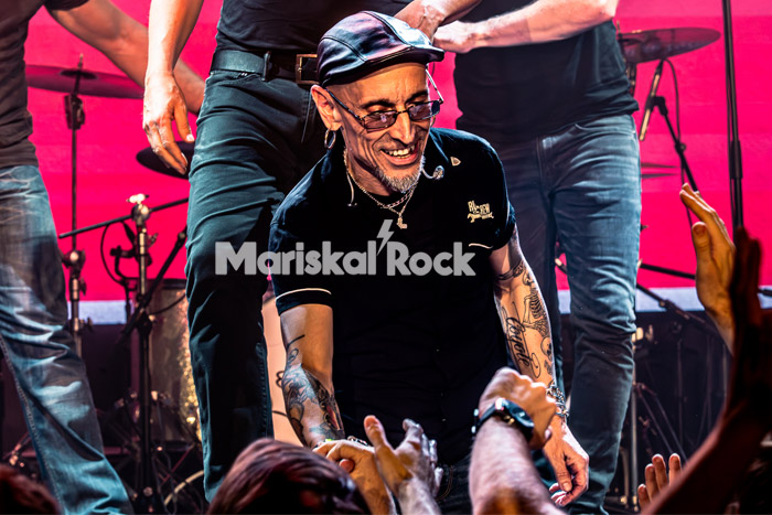 A veces lo mejor se ve cuando miras “A contraluz”, y para un servidor que escribe, es una de las que más me gustan de esta nueva entrega, que parece concebida para el directo, por cierto, con una parte final de Coki Giménez a la batería soberbia. Llegábamos al ecuador del disco cuando se detuvo para comentar con un tono más íntimo: “No sé si el disco empieza a dividirse aquí, yo solo me limito a cantarlo”.