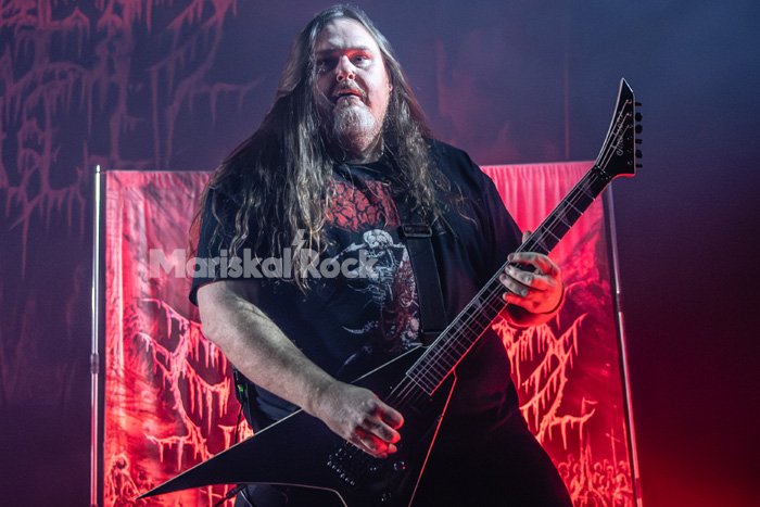 Los siguientes en tomar el escenario fueron otros representantes estadounidenses del cartel, nada menos que los veteranos del death metal melódico The Black Dahlia Murder. Hasta donde recuerdo, era la primera vez que los veía actuar en una sala, tras la salida del guitarrista principal Brandon Ellis hace algo más de un año. Para esta gira, la banda cuenta con el guitarrista Wes Hauch, conocido por su trabajo en Alluvial, como músico invitado. Hauch, contemporáneo de varios miembros del grupo, ya ha estado acompañándolos desde el año pasado. Queda por ver si terminará incorporándose de forma permanente a la formación, sobre el escenario demostró que encaja perfectamente en el engranaje de la banda.