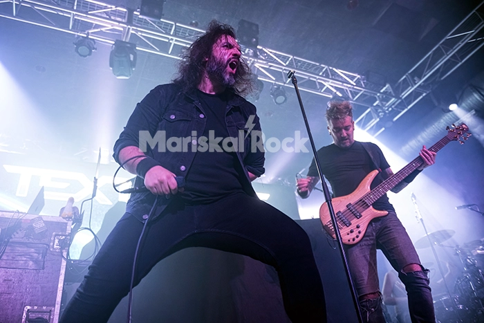 Abrieron la velada los neerlandeses Textures, muy esperados por los amantes del metal progresivo. El quinteto regresó a los escenarios tras varios años de silencio, acompañado de nuevo material, ‘Genotype’ (2026). Tuvieron que acomodarse a un escenario bastante reducido, con hasta tres baterías dispuestas para los distintos actos, lo que relegó el set de batería del siempre imponente Stef Broks a un lateral. Aun así, el músico ofreció una auténtica cátedra de técnica, groove y polirritmia, bien secundado por el bajista Remko Tielemans, probablemente el miembro más expresivo y motivado sobre las tablas.