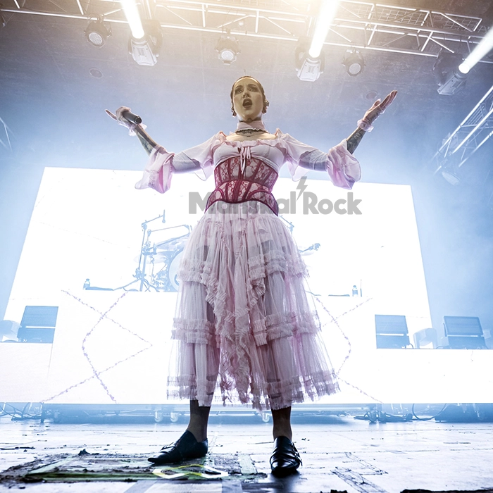 La diferencia con aquel primer encuentro con el público bilbaíno era evidente. Esta vez, como cabezas de cartel de la gira, Jinjer contó con todos los medios necesarios para que su música brillara aún más: las luces y las proyecciones meticulosamente pensadas añadían dimensión y protagonismo al show, acompañando cada cambio de ritmo y clímax del set. En el escenario, Tatiana Shmayluk desbordaba simpatía y carisma, una verdadera diva, vestida de blanco en esta ocasión, mientras sus compañeros se mantenían más discretos, cada uno en su rincón, disfrutando lo que mejor saben hacer: tocar metal de alto nivel con pasión y precisión.