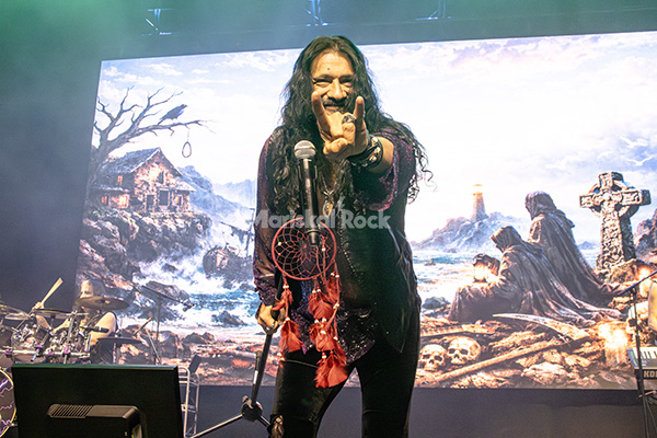 Con “Es hora de marchar”, versión en castellano del “Rainbow Eyes” de Rainbow, Kabrönes quiso homenajear a dos músicos relevantes en la historia de Mägo de Oz que nos dejaron hace poco. Fernando Ponce de León, que lo hizo en septiembre de 2024, contó con la aparición de sus dos hijos para recibir una fuerte ovación, y Sergio Cisneros “Kiskilla”, que se nos fue en marzo de este año. Su heredero Diego Cisneros tomó las riendas de los teclados, produciéndose uno de los momentos más emotivos de la noche cuando al finalizar la canción todos los músicos se abrazaron a él, recibiendo una fuerte ovación.