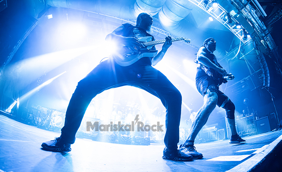 Durante su concierto, hay unas pequeñas plataformas adicionales, ubicadas en el frontal del escenario y que son usadas por los guitarristas del grupo. Se percibe entre ellos una gran conexión que se refleja en la entrega y la energía que trasmiten. Desde las guturales, pasando por unas cuerdas de fuego hasta unos tambores tocados con furia y virtud, corroboran que estos titanes juegan de local en Madrid.