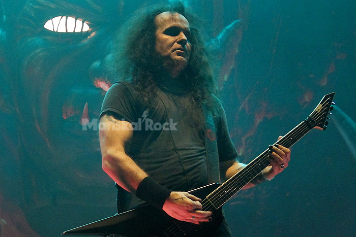 El veterano Rob Dukes, regresa a la banda con el propósito de trabajar el nuevo material y, “moqueando” hacia el público, sin dejar de incitar al pogo en la pista, descargaba los temas que traían para esta gira como invitados y en la que aprovechan para presentar a ‘Goliath’, del que nos dejaban “3111” y “Promise You This”, y otros como “Bonded by Blood”, “The Toxic Waltz” o “Strike of the Beast”. En su breve actuación también hubo un lugar para homenajear a Freddie Mercury, momento en el que Dukes trató de imitar su garganta a modo de “Eoooo”, y para hacer un guiño a Metallica con la introducción de “Sick and Destroy” de la mano y guitarra eléctrica de Holt. Descarga brutal, la de estos chicos de San Francisco, donde sólo Gary Holt sigue siendo el alma mater y único miembro permanente de la banda, apareciendo en todos sus discos.
