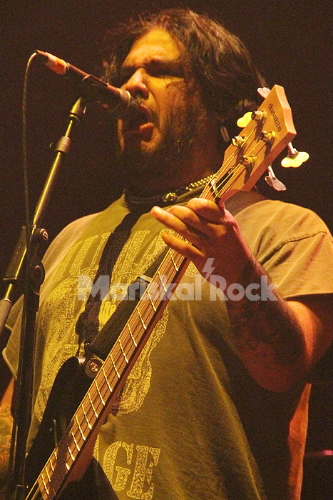 Durante cuarenta y cinco minutos, el cuarteto de metal extremo Carcass, paisano de los Fab Four de Liverpool, reventaba nuestros oídos a lo “Blow Your Speakers”, en un recinto donde el metal de calidad no daba tregua. Con el único decorado sobre el escenario, un telón de fondo, pero armados hasta los dientes, salieron para seguir calentando el ambiente a modo de pogo en la pista y headbangers en las gradas, dilapidando sin mesura la distorsión potente de las guitarras acompañadas por la ejecución perfecta y grave del bajo y la fuerte y poderosa pegada de la batería, demoledores y desgarradores sin desperdiciar ni un solo segundo de su tiempo.