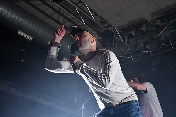 Diosito ya en el segundo tema bajó al foso para intercambiar impresiones con los fieles, y por supuesto cayeron los preceptivos brindis. “Otra noche más” era para darlo todo y cagarse en “esta puta sociedad”, como dicen ellos. Con el macarrismo del que hacen gala, no tuvieron reparos en reivindicar su Tárrega natal y su condición de grupo de pueblo. Y precisamente nada provoca más orgullo que los garitos que se encuentran por allí, algo que evocaron en “Bar de Paco”.