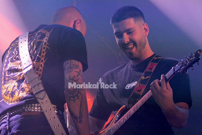 Asier Cuiral y Aimar Goikoa a las guitarras, Asier González a la batería y Alain García al bajo, junto con el mencionado Aaron Romero, son los responsables de que cada acorde, cada estribillo, cada línea de bajo, cada golpe al redoblante, sean mordidas certeras y letales. Evidentemente que cargan un talento innato, pero lo mejor es que lo rubrican a lo largo y ancho del concierto. “Desataron a los perros” es arrolladora, “Querida libertad” es un volcán en directo, mientras que “Askatu ezazu ilea” es como un puñal que se incrusta en el esternón. A estas alturas el pogo ya ha tomado vida propia, Aaron agradece continuamente por las muestras de cariño, por el apoyo y por la energía que le transmite el público.