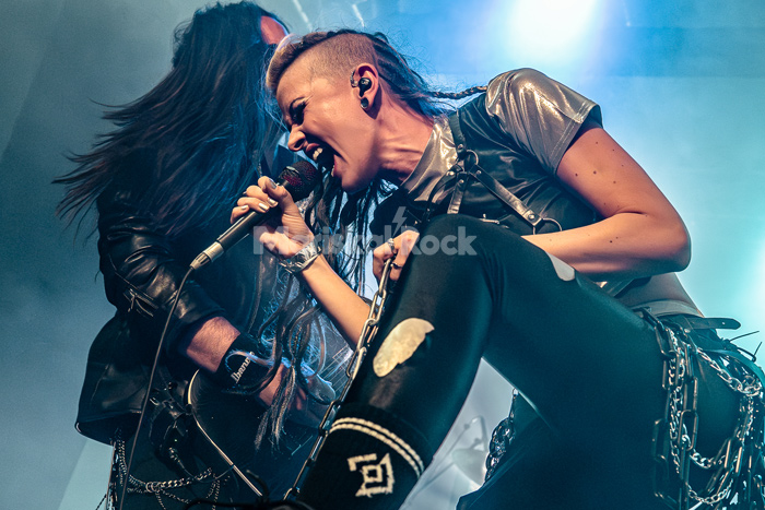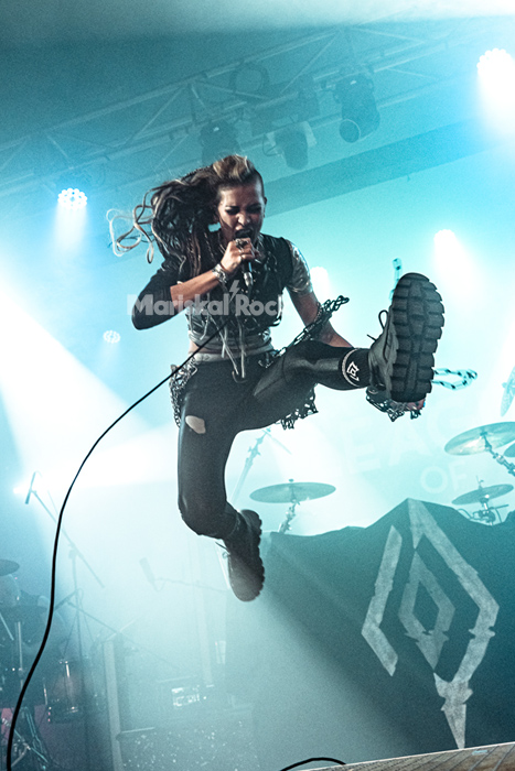La velada arrancó con League of Distortion. Liderados por una Anna “Ace” Brunner volcánica, los alemanes no pidieron permiso. Su metal moderno, directo y con tintes industriales, sirvió para calentar una sala que ya presentaba una entrada envidiable. Temas como “Wolf or Lamb” y la coreada “I’m a Bitch” demostraron que la banda tiene entidad suficiente para sacudirse cualquier etiqueta de “telonero”, dejando el listón de energía en lo más alto antes del primer cambio de acto.