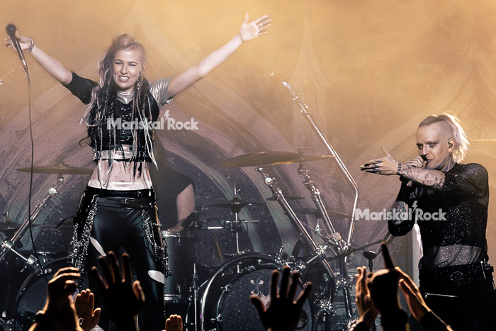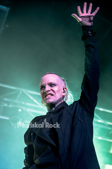 El tramo final fue una celebración calculada: “The Things We Do for Love”, “Doomsday Disco” y “Blood & Glitter” transformaron la sala en una pista de baile industrial, donde la precisión técnica dio paso a la liberación física del público. La aparición de Anna “Ace” Brunner en “Please Break the Silence” añadió una capa simbólica inesperada, conectando narrativas dentro de la escena actual. El clímax llegó con el cover de “Cha Cha Cha”, reinterpretado como un himno de caos controlado que desembocó en un wall of death masivo, antes de que “Light Can Only Shine in the Darkness” cerrara el ritual. Más que un concierto, lo vivido fue una demostración de control escénico absoluto: cada músico, lejos de ser accesorio, cumplió una función específica dentro de un engranaje donde lo visual, lo técnico y lo emocional operan con precisión casi industrial.