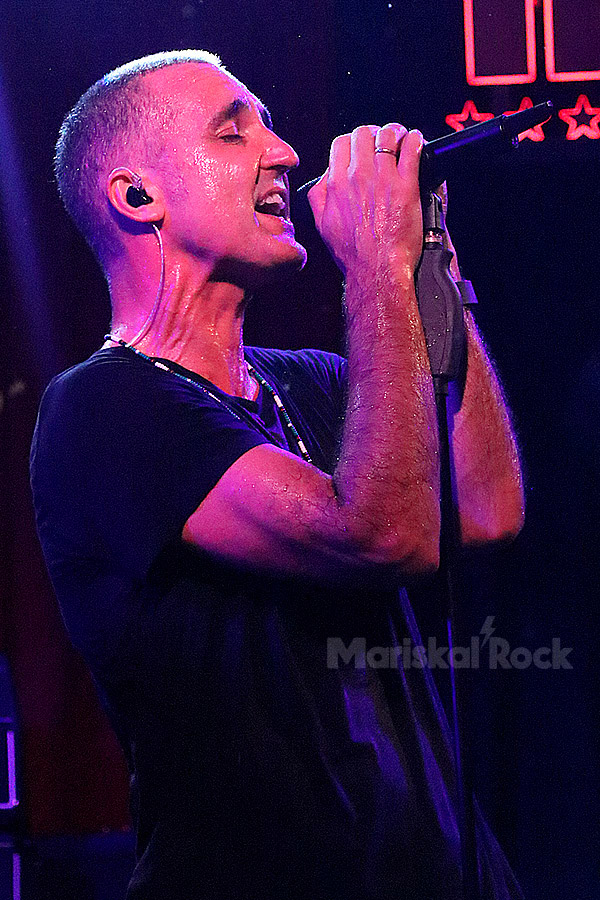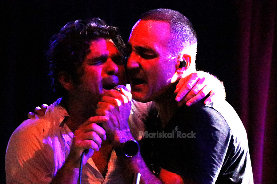 “Esos años” inauguró una fase del concierto que se presumía algo más melancólica, pero se transformó en un barril de pólvora que estalló cuando Gaby correteó por toda la sala, micrófono en mano y totalmente poseído por la efervescencia del momento. Más acompasada es “Elisa”, presentada entre jadeos por el hiperactivo cantante, que reconoció que seguía echando de menos Madrid, donde varios de ellos vivieron algunos años.