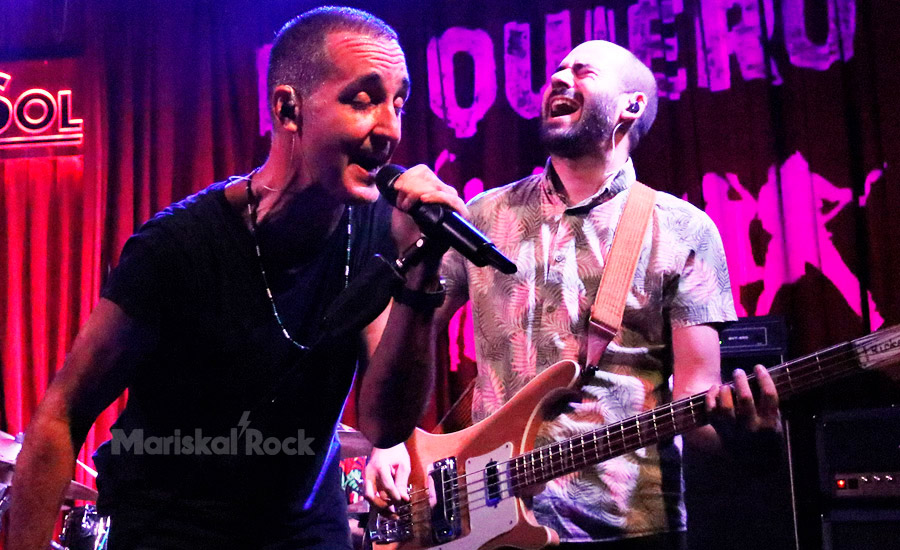Gaby Salaverry, vocalista principal y alma máter de una banda en meteórico ascenso, hacía aparición en escena con elegancia y casualmente trajeado, con un énfasis comedido que fue tornándose con el paso de los minutos en entusiasmo desbocado y energía incontenida conforme su camisa se empapaba en sudor y la americana quedaba en un vago recuerdo. Como quien llega como un pincel a una boda que acaba en despendole. La actitud, ese ingrediente esencial, se sirvió en generosas porciones gracias a él y al segundo vocalista y alma de la fiesta, el polifacético y entregadísimo Antón Uribe.