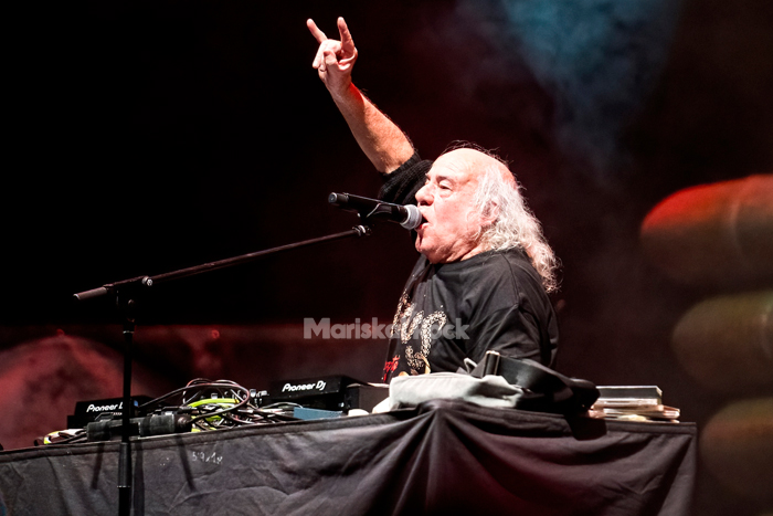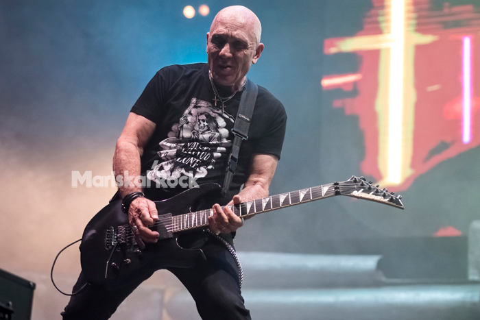 Nos pregunta si estamos con fuerzas para recibir nuestra “Dosis de heavy metal”, por supuesto que sí, aunque la mayoría de nosotros no con la misma energía, encomiable a sus 71 años.