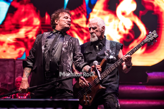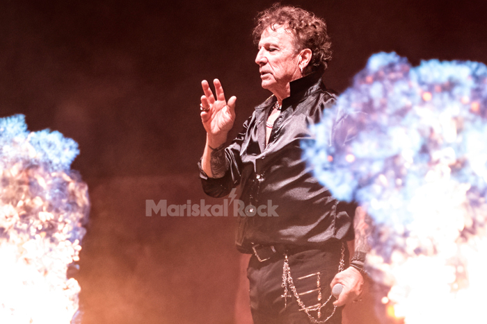El doble bombo de Fernando Sánchez en “Pesadilla nuclear” nos puso tan incandescentes como las chispas del escenario. Fortu nos dejó flipados con sus agudos casi 45 años después, tras el solo de Paco Laguna, y el tema fue coronado por un sonoro “No a la guerra” del cantante.