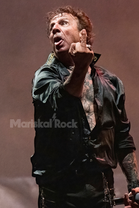 “Más que un dios” y su mordaz crítica al imperialismo yankee vino acompañada de imágenes sobre su maquinaria de destrucción, y tuvo nuevamente columnas de humo a modo de colofón. Alargaron la intro de “Sin dirección” pidiendo palmas, ¡cómo me encienden ese riff a lo AC/DC y la firmeza con la que Fortu encara cada verso! En sus estertores volvió la pirotecnia.
