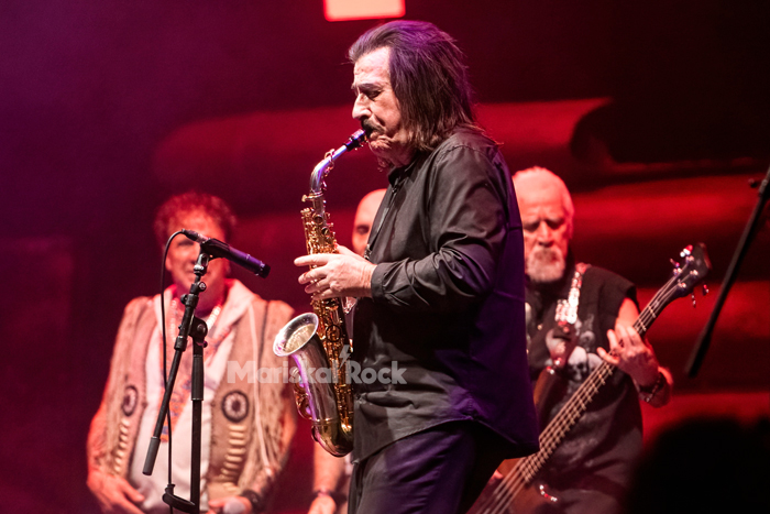 Bajan el ritmo con “Dame amor”, un tema que a veces se me ha hecho largo cuando lo he escuchado en directo, pero no en esta ocasión, con Paco poniéndole énfasis a los coros y sobre todo porque estuvo engalanado por el saxofón que tocó ni más ni menos que Luis Cobos, ¡un lujazo! Para rubricarlo, el cantante y el multiinstrumentista y director de orquesta, productor de Obús en sus años mozos, realizaron un juego voz/saxo que les quedó de perlas.