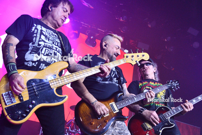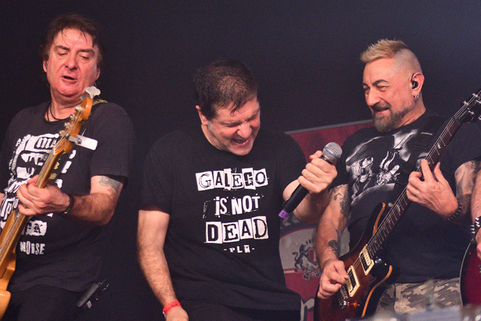 Se acerca el último tramo, el que desata los pogos por toda la sala (literalmente por toda la sala), el que se construye alrededor de sus canciones más festivas, movidas y resultonas; el que hace que los minis vuelen, el que empiezas aquí y acabas allí. “La del fútbol”, “Jodido futuro”, el popurrí que mezcla los “Clásicos” y los “Clásicos II”, y el broche con Quini de Benito Kamelas a las voces en “Ahora lo llevamos bien”, cercana en interpretación vocal a la que hizo Raimundo Amador, consecuente musicalmente con la original.