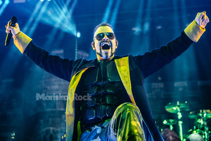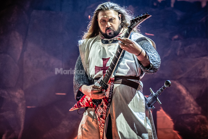 En ese escenario B asistimos a una escena casi burlesca: Napoleón Bonaparte exponiendo su visión muy francesa del mundo, seguido de Gengis Kan en un breve intercambio verbal con el francés, y finalmente Julio César, que acababa siendo apuñalado con una daga. Tras ello, varios soldados cruzados atravesaron la sala para subir al escenario B. ¿La sorpresa? Bajo las túnicas se encontraban los propios miembros de Sabaton. Así arrancó el concierto, tras casi veinte minutos de teatro histórico, con “Templars”, tema de su último álbum.