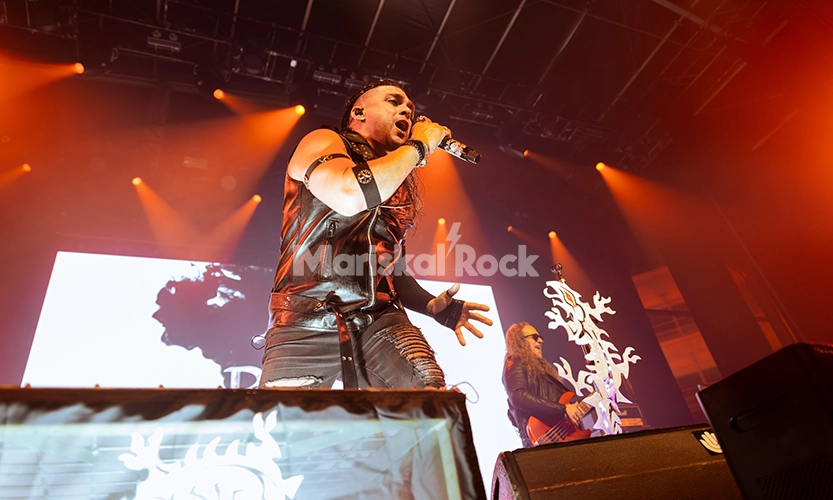 La intro “El Clan de los Lobos” sirvió como llamada a filas antes de que Tete Novoa tomara el control del escenario con “San Telmo 1940”, demostrando desde el primer momento su poderío vocal y su conexión total con el público madrileño. Sin bajar el listón, Tete volvió a liderar “Tierra de lobos”, confirmando que Saratoga estaba en casa y que la comunión con su gente iba a ser absoluta durante toda la noche. “Ángel de barro”, también en la voz de Tete, mantuvo ese arranque sólido y contundente que puso Las Ventas patas arriba desde los primeros compases.