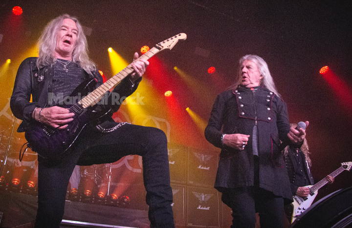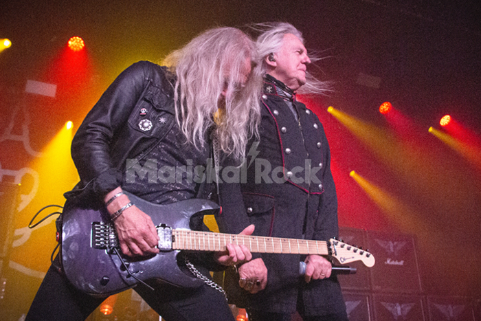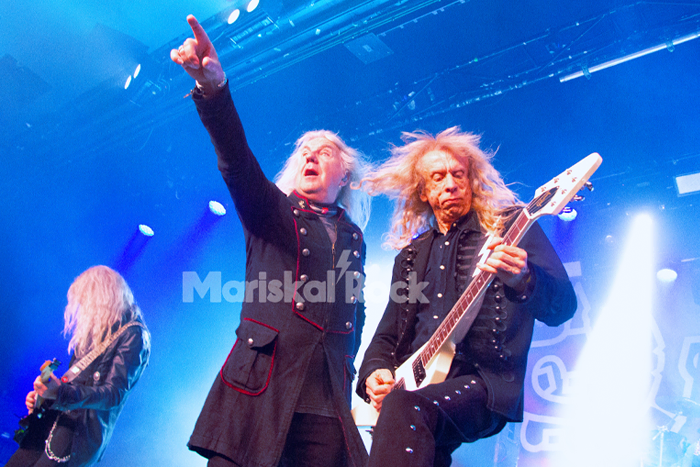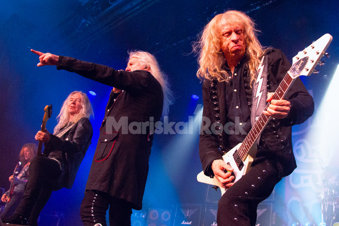 Melenas, pantalones ajustados, botas, guitarras clásicas y sobre todo actitud, mucha verdad y autenticidad. Son ellos, sin más, como en el 1980, y como cuando consiguieron salvar con muchos arrestos y dignidad los difíciles 90 y primeros 2000. O como cuando se adaptaron hace poco con el guitarrista de sus compadres Diamond Head a la salida reciente de Paul Quinn, mano derecha de Biff desde el inicio.