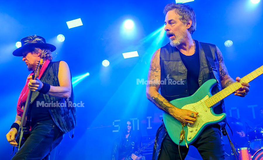 El ritual de iniciación estalló con "Life Unchained", revelando en el centro del escenario a dos tótems de las seis cuerdas. Adrian Smith, la elegancia británica personificada, manejaba sus guitarras como extensiones de su propio sistema nervioso; a su lado, Richie Kotzen (líderes de Smith/Kotzen), un prestidigitador cuyas manos prescinden de púa para acariciar y castigar el mástil con una técnica que desafía las leyes de la física. Las voces se fundieron desde el primer compás: el barítono rugoso y honesto de Smith servía de ancla perfecta para que Kotzen lanzara sus giros de seda y fuego.