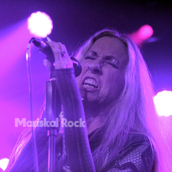 Sin lugar a dudas, su voz es una de esas obras sagradas que han creado los dioses del rock, esos mismos que nos han citado un lunes por la tarde para demostrarnos que sin metal no podemos vivir. Rubricamos que efectivamente es así, porque un vital metal nos ofrece la vocalista en “Demons in You” y “Victim of Ritual”. Ambas hicieron temblar los cimientos de la ciudad. El don inmaculado denominado voz es más que un instrumento en la frontwoman. Es una forma de expresarse, de comunicarse, de expandirse, de escribir paginas sagradas en el libro de la memoria de cada uno de los presentes.