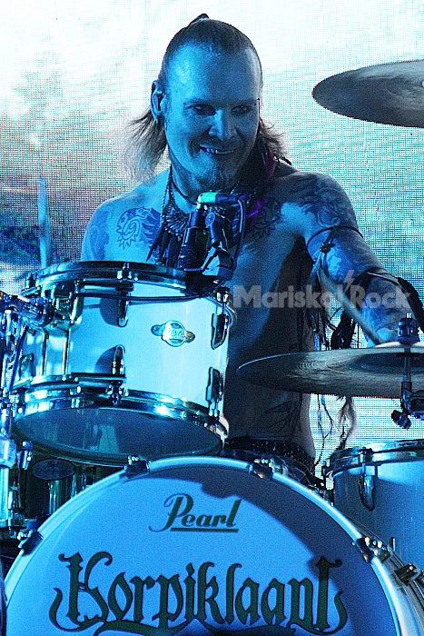 Tal vez la nostalgia es la explicación por la que el concierto en este punto se nos estaba haciendo algo de bola. Quienes nos familiarizamos con Korpiklaani en su época de mayor expansión echábamos en falta, tal vez, otro tipo de canciones, a lo mejor más temas de álbumes anteriores, aunque la subjetividad aquí es de recibo reconocer que juega un papel fundamental. Sí que miraron hacia el pasado con “Viima”, aunque no fue del todo fiel a su tradicional melodía, y “Metsämies”, un clásico tras el que se retiraron unos segundos para que Samuli Mikkonen arrollase con un fornido solo de batería.