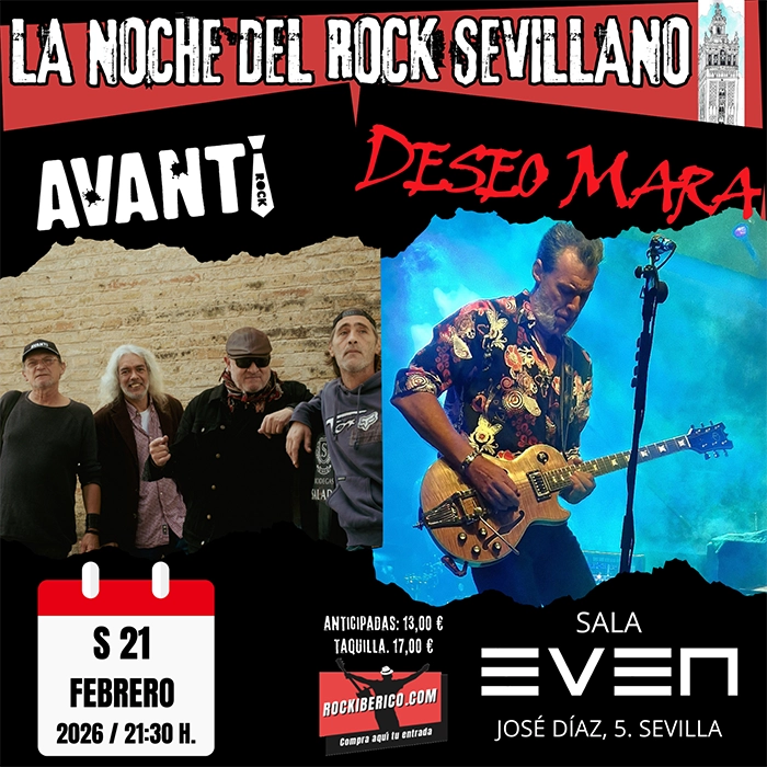 La tercera edición de “La noche del rock sevillano” nos espera a todos en la sala Even de la capital andaluza el próximo 21 de febrero, a partir de las 21:00, con dos grandes exponentes de la música más potente de la ciudad, Deseo Mara y Avanti Rock, que harán las delicias de los más exigentes amantes del género, tanto los más clásicos como todos aquellos que busquen nuevas emociones guitarreras.