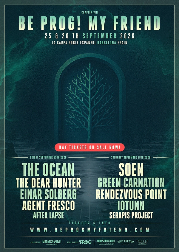 Todo está preparado para la celebración de la que será octava edición del festival Be Prog! My Friend, el referente de los sonidos progresivos, que volverá a Barcelona, concretamente a La Carpa del Poble Espanyol, los días 25 y 26 de septiembre de este 2026, con Soen y The Ocean encabezando un cartel que ya tenemos dividido entre sus dos jornadas.
