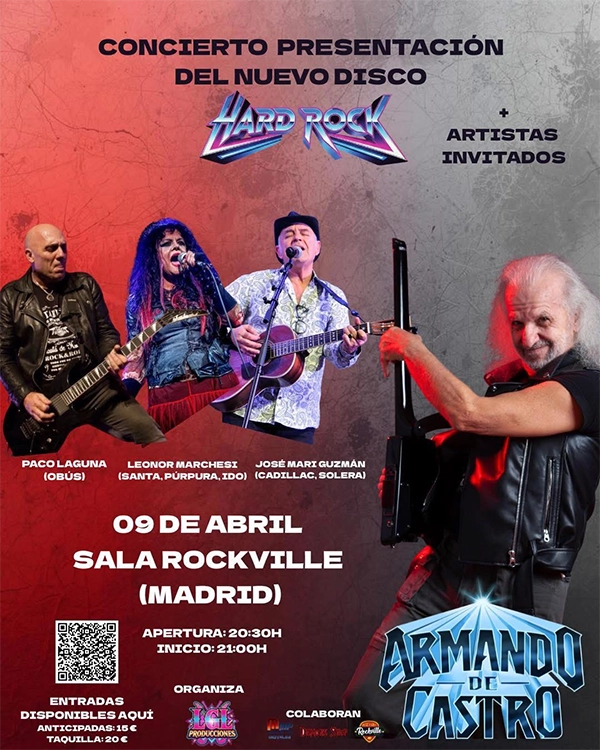 ‘Hard Rock’ es el elocuente título del disco que vio la luz el pasado mes de diciembre de 2025 (a la venta a través de Demons Shop), cuya presentación en directo llevará a Armando de Castro y su banda a la sala Rockville de Madrid el 9 de abril, con la apertura de puertas programada para las 20:30, y las entradas todavía a la venta en este enlace.