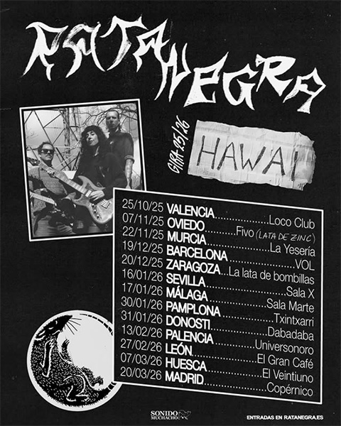 Mucha gente asociaría una playa con un lugar idílico, pero no tiene por qué tratarse siempre de algo así. Los madrileños Rata Negra nos muestran en su último disco ‘Hawai’ un paraíso deseado, sí, por eso podemos ver en la portada a sus componentes en ociosa actitud, pero al mismo tiempo profundizan en las miserias humanas cotidianas que no suelen salir habitualmente a la luz. Sin perder de vista las señas de identidad contraculturales que caracterizan a la banda, la vocalista y bajista Violeta Terroba junto al batería Pablo Silva abordan las preguntas de Alfredo Villaescusa.