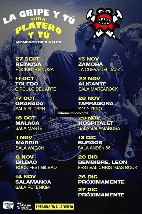 A las 18:00, David Esquitino tomará el relevo con su programa ¿Hay alguien ahí?, que en esta ocasión contará con un invitado de excepción: Juantxu Olano, histórico bajista de Platero y Tú y miembro de La Gripe y Tú, proyecto con el que mantiene vivo el espíritu de la legendaria banda bilbaína. Este sábado tendremos a los de Olano en la sala Wagon de Madrid (Entradas aquí), donde ofrecerán una descarga de los mejores temas de la histórica agrupación bilbaína. La gira de La Gripe y Tú. Además, diversas ciudades y salas españolas acogerán lo que queda de gira con fechas en: