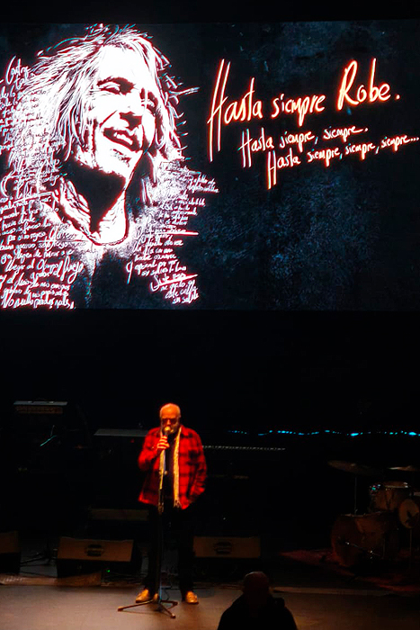 La elección de los inmensos músicos de Robe para deleitar a los asistentes al homenaje no puede ser más acertada. Con desgarro y emoción, pero también celebrando todo lo vivido y compartido, nos regalan “El poder del arte”, canción incluida en su último disco ‘Se nos lleva el aire’, que encierra la que es, seguramente, la mayor de las muchas enseñanzas que nos deja el gran Roberto Iniesta: “Que el poder del arte bien nos pudiera salvar, de una vida inerte, de una vida triste, de una mala muerte, bien nos pudiera salvar.”