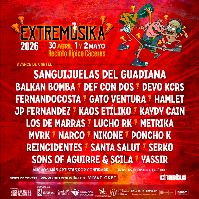 - Extremúsika anuncia a Def Con Dos, Reincidentes, Hamlet, Los de Marras, Narco, Poncho K, Gato Ventura y muchos más para su edición de 2026, adelantada al puente de mayo - 28 noviembre 2025